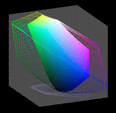 It is determined by the chromatic coordinates of the primary colors (red, green, and blue), often expressed in XYZ coordinates, and how the device responds to input values (gamma).